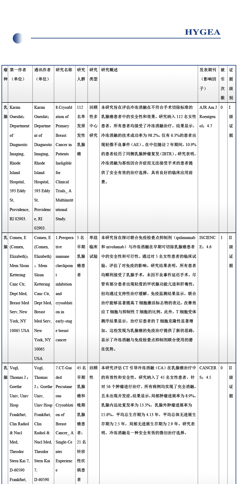 2024年冷凍消融實(shí)體腫瘤年度進(jìn)展-乳腺腫瘤——【海杰亞科研資訊】第303期